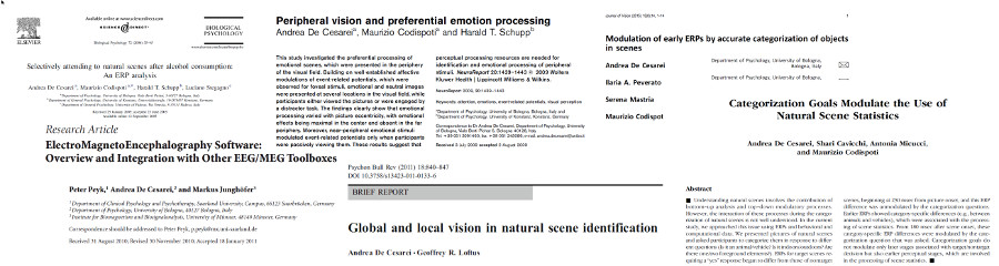 De Cesarei, A., Codispoti, M. (2011). Scene identification and emotional response: which spatial frequencies are critical? Journal of Neuroscience, 31:17052-17057. 10.1523/JNEUROSCI.3745-11.2011